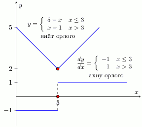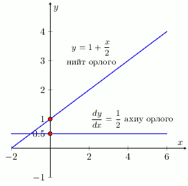 \node[above,yshift=1mm,xshift=30mm] at (b) {\small $\dfrac{dy}{dx}=\dfrac{1}{2}$ ахиу орлого};