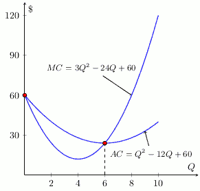 \node[above,yshift=25mm,xshift=-5mm] (MC) at (intersection-2) {\small $MC=3Q^2-24Q+60$};