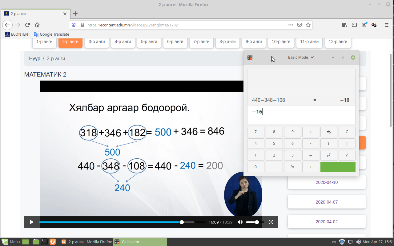ЕБС-ийн 2 дугаар ангийн математикийн теле хичээл дэх зарим алдаа