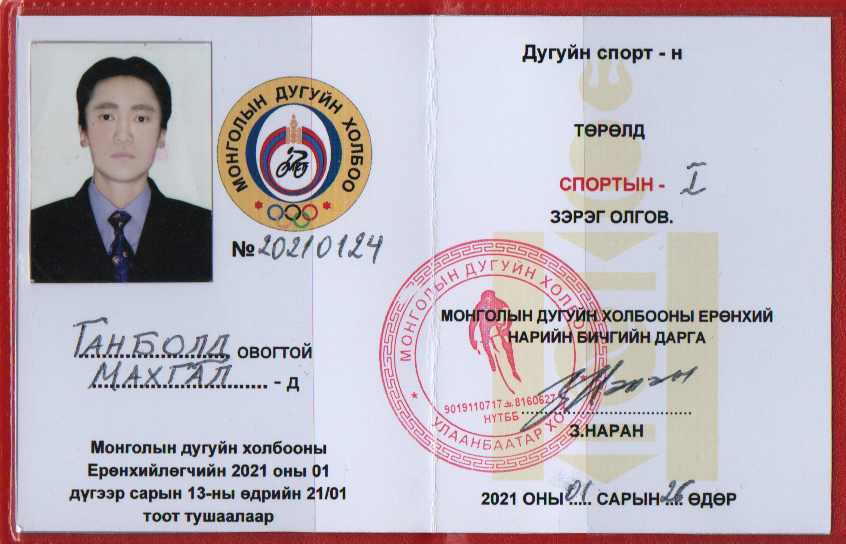 Дугуйн спортын төрөлд спортын I зэргийн болзол биелүүлсэн тухай